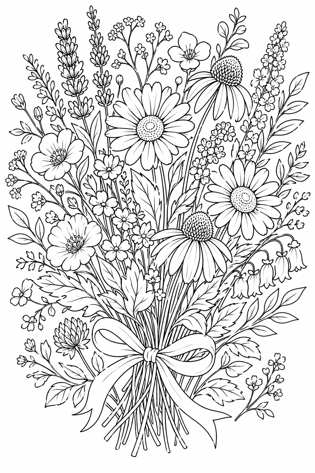 Lataa: Niittykukkakimppu – värityskuva