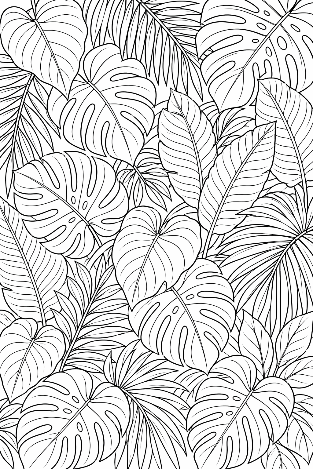 Lataa: Trooppinen lehtikuvio – värityskuva