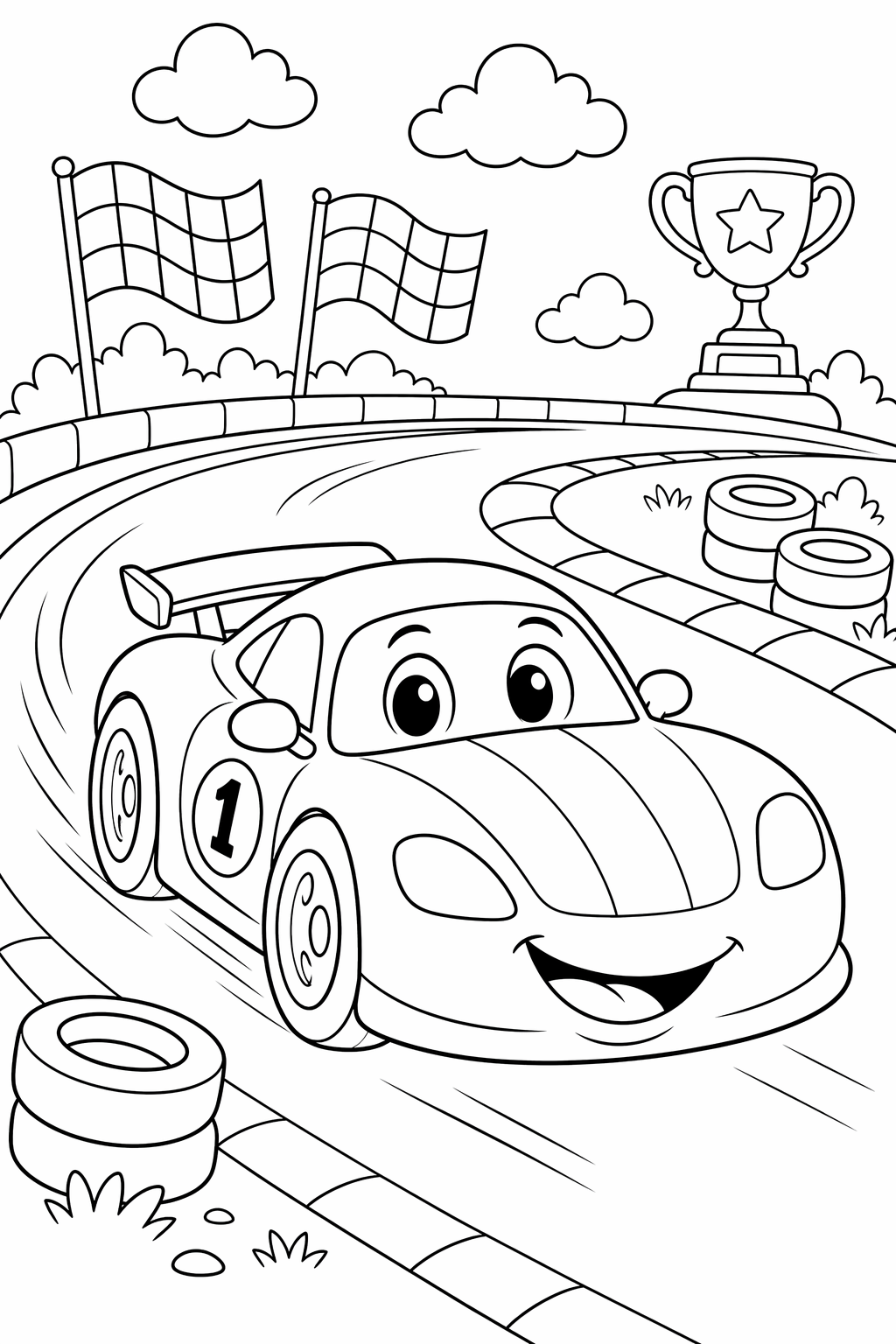Lataa: Kilpa-auto radalla – värityskuva