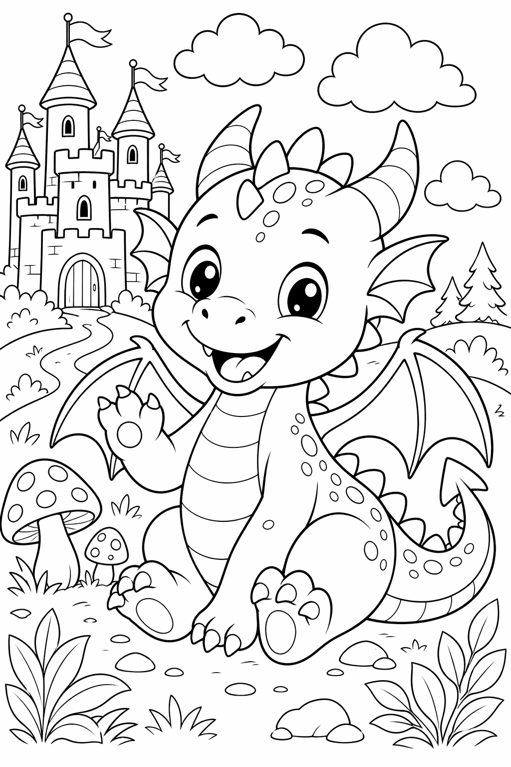 Lataa: Lohikäärmeen poikanen ja linna – värityskuva