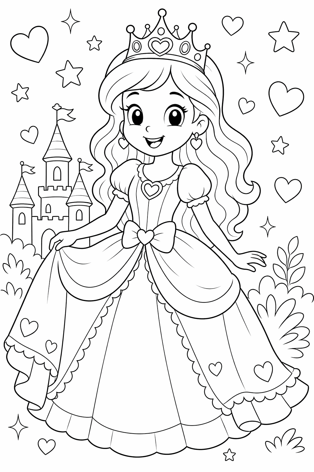 Lataa: Prinsessa kruunussa ja juhlapuvussa – värityskuva