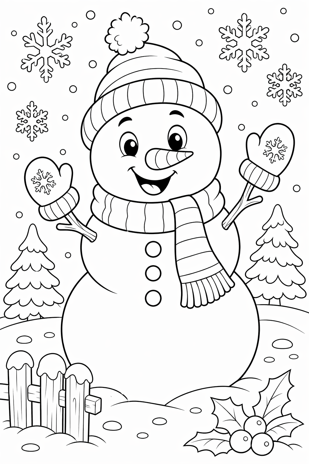 Lataa: Lumiukko talvipuuhissa – värityskuva