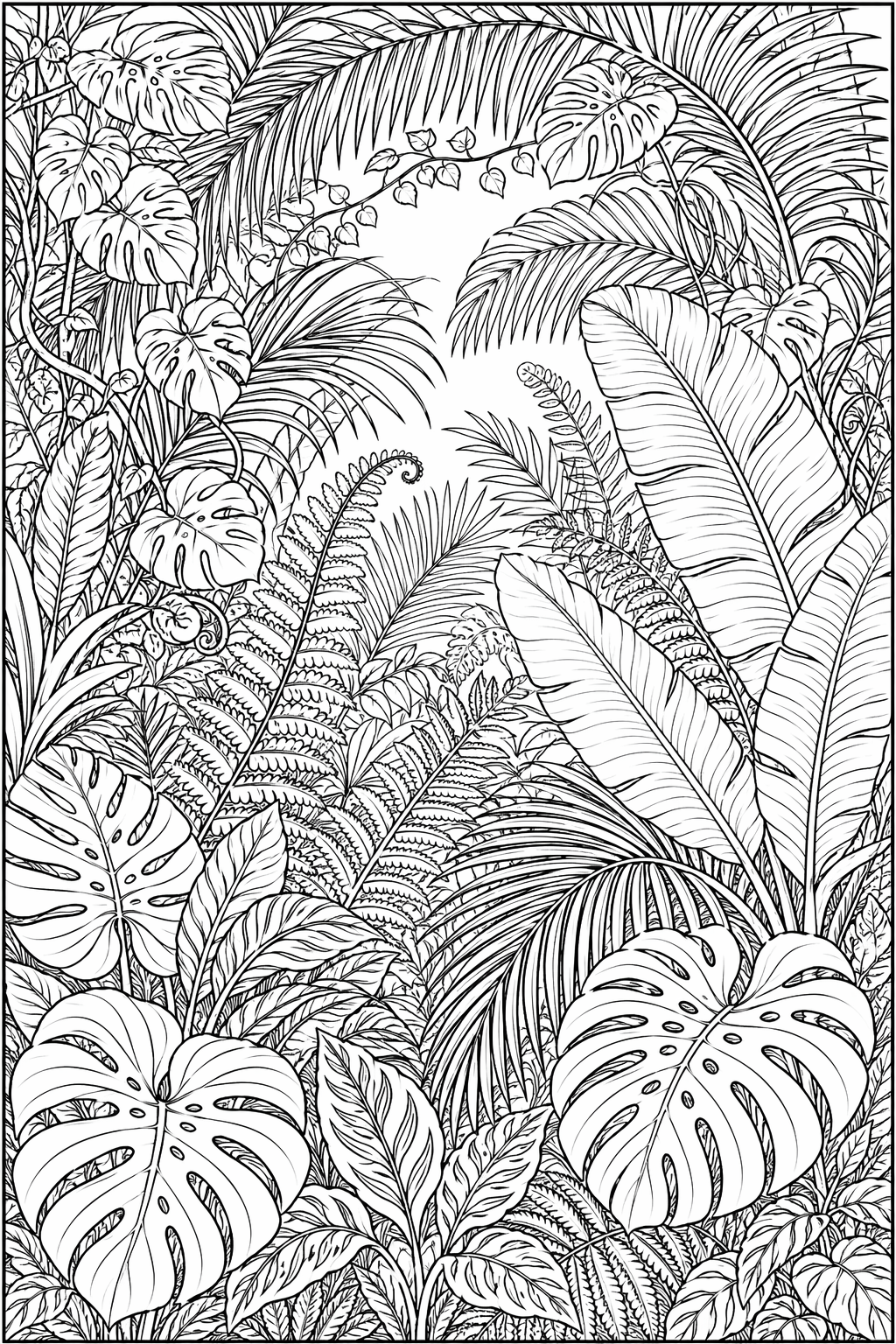 Lataa: Viidakkosaniaisten kaaret – värityssivu aikuisille