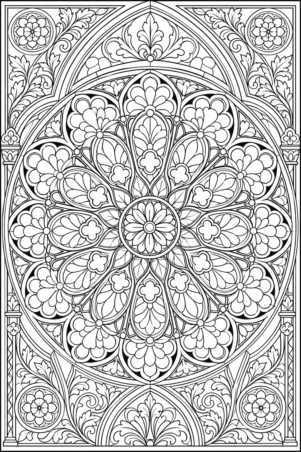Lataa: Viktoriaaninen ikkunamandala – värityssivu aikuisille