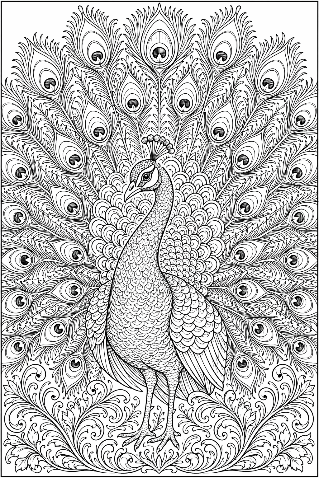 Lataa: Riikinkukon viuhkaornamentti – värityssivu aikuisille