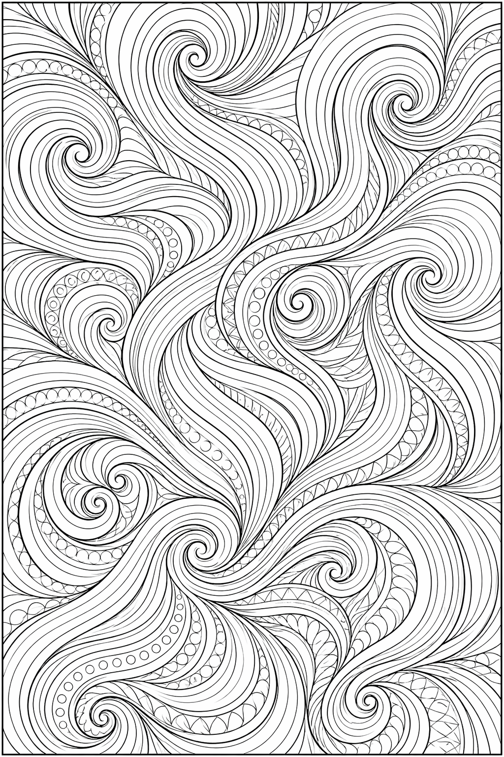 Lataa: Virtaava musteaaltokuvio – värityssivu aikuisille